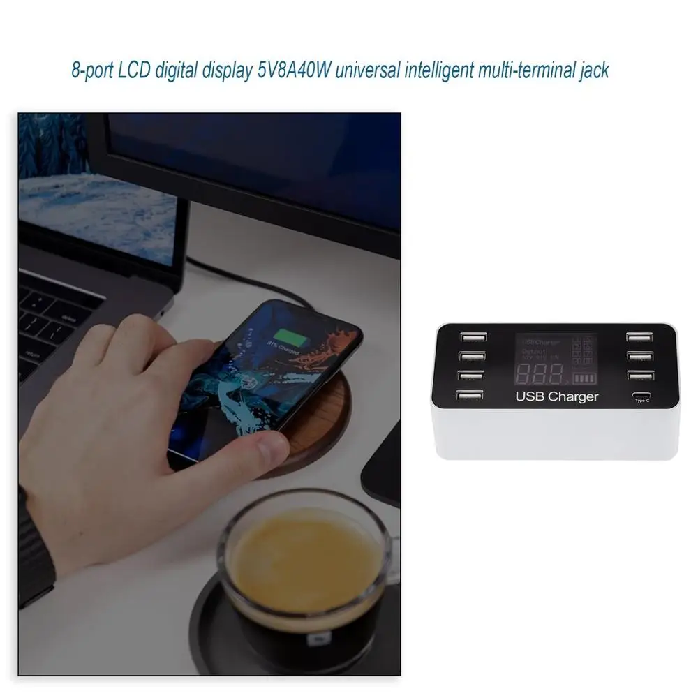 8 Port USB Type C Charger Smart LED Display USB Fast Charging Adapter 40W smart Travel Charger AU E