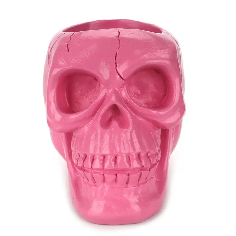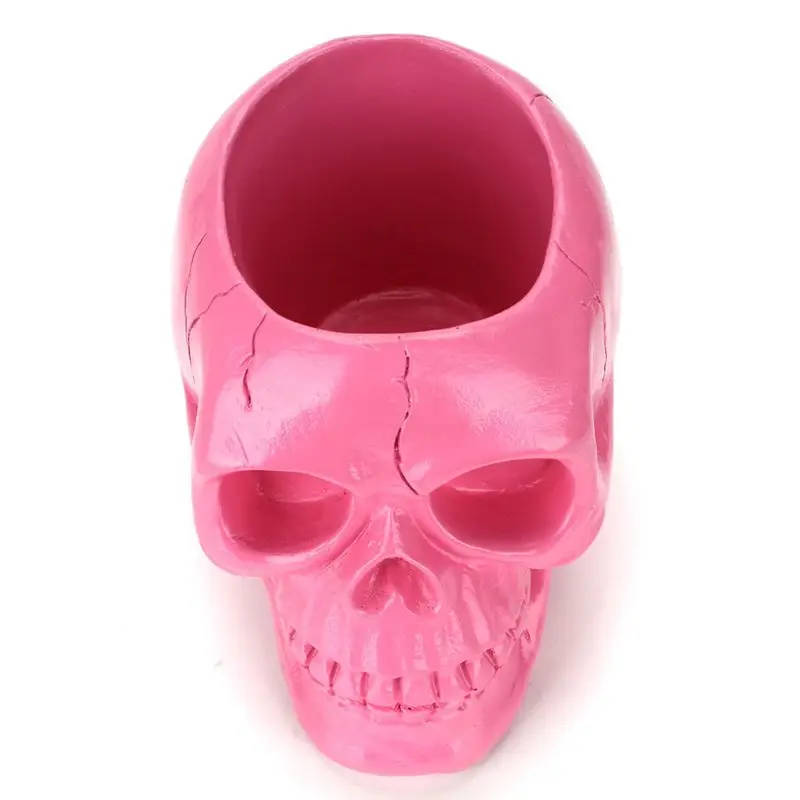 HIGH QUALITY Creative Pink Skull Ornament Skeleton Pen Holder Desktop Pencil Organizer Makeup