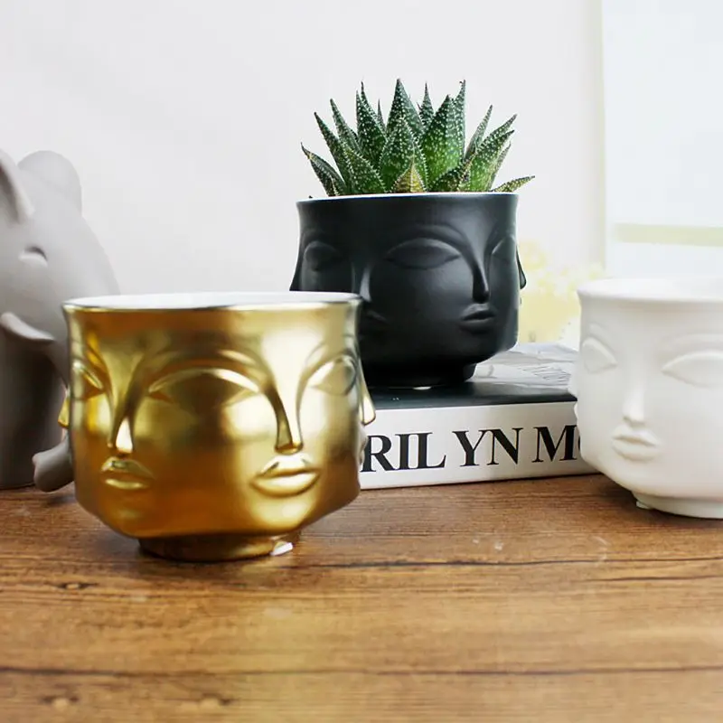 Face Shape Designs Ceramic Vase Porcelain Flower Pot Home Decoration Accessories Planters Golden Bl