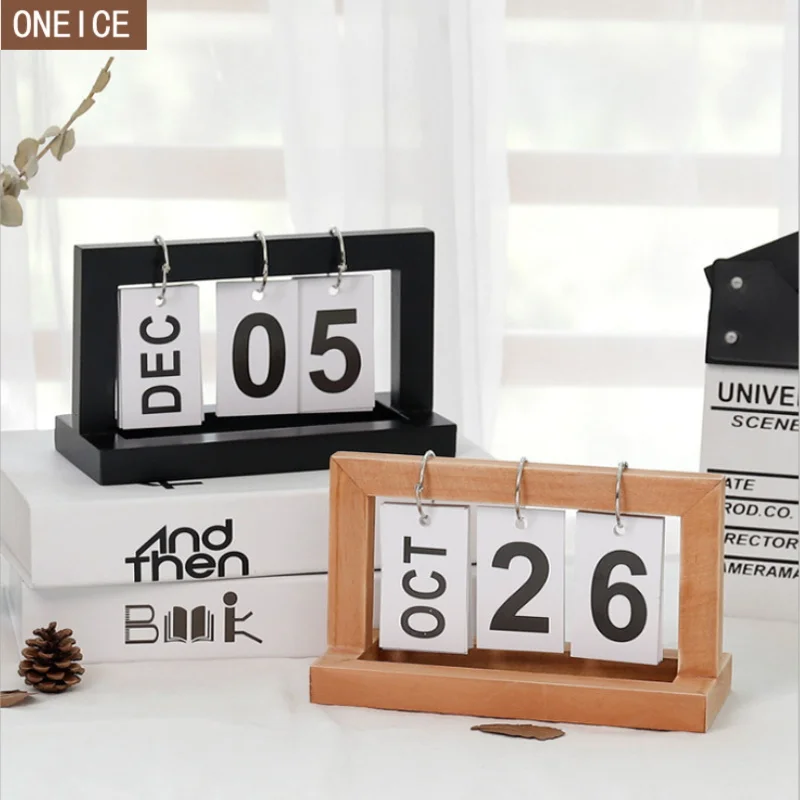 Nordic Solid wood Calendar Desktop office ornament Handmade home long-lasting practical decoration