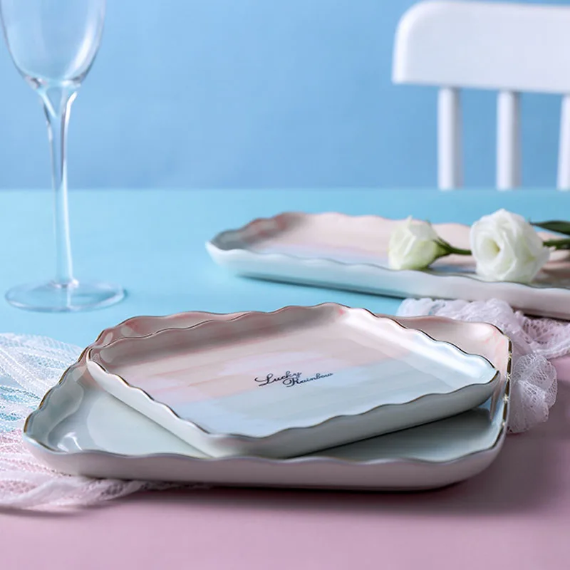 Western Steak Ceramics Plate European Style Wedding Desktop Dessert Fruit Cake Decorative Trays Hom