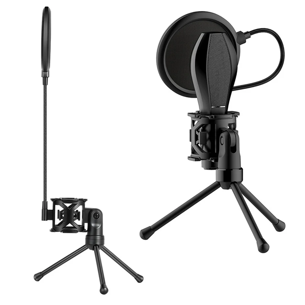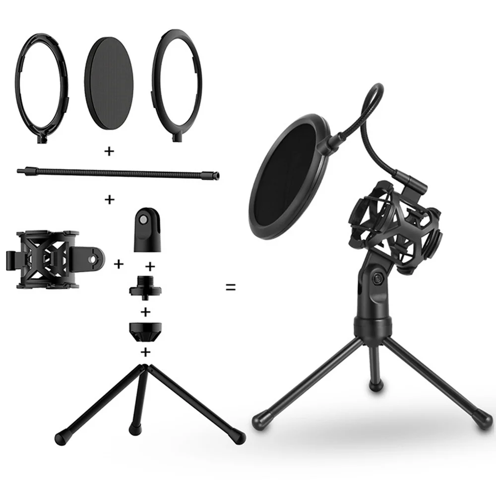 New Microphone Holder Stick Desktop Tripod Stand Anti-Spray Net Kit