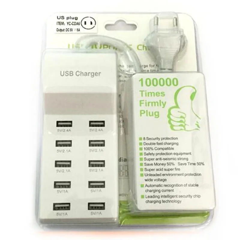 AC 100V-240V Wall Plug Universal 10 Ports USB 5V 10A 2.4A 2.1A 1A Table Rapid Dock Charger Adapter