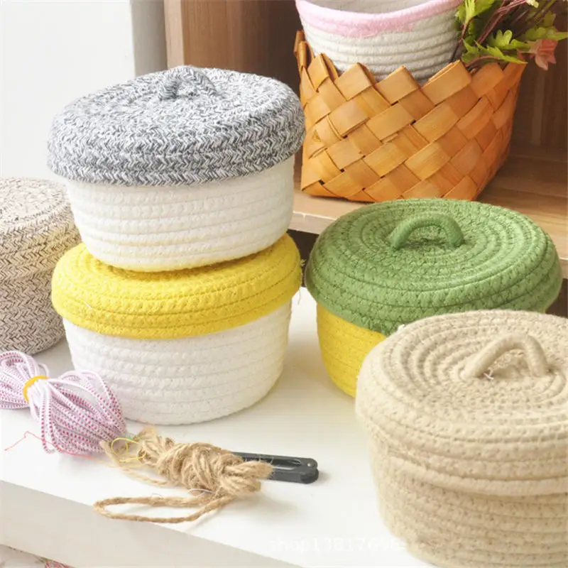 Cotton Woven Storage Basket Desktop Sundries Cosmetics Snack Fabric Storage Box Sewing Kit For Toys