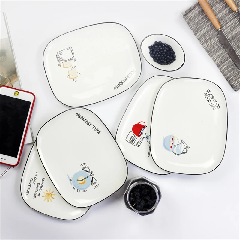 REVIEW TOP SELLER Nordic Ceramic Dessert Dishes Creative Breakfast Rectangular Fruit Salad Cartoon Plates Multifuncti