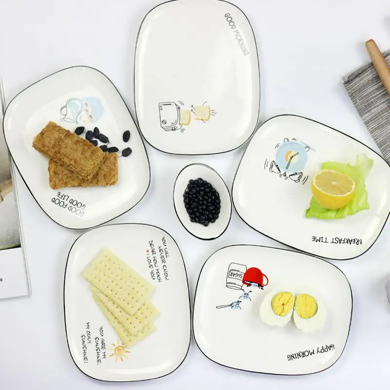 Nordic Ceramic Dessert Dishes Creative Breakfast Rectangular Fruit Salad Cartoon Plates Multifuncti