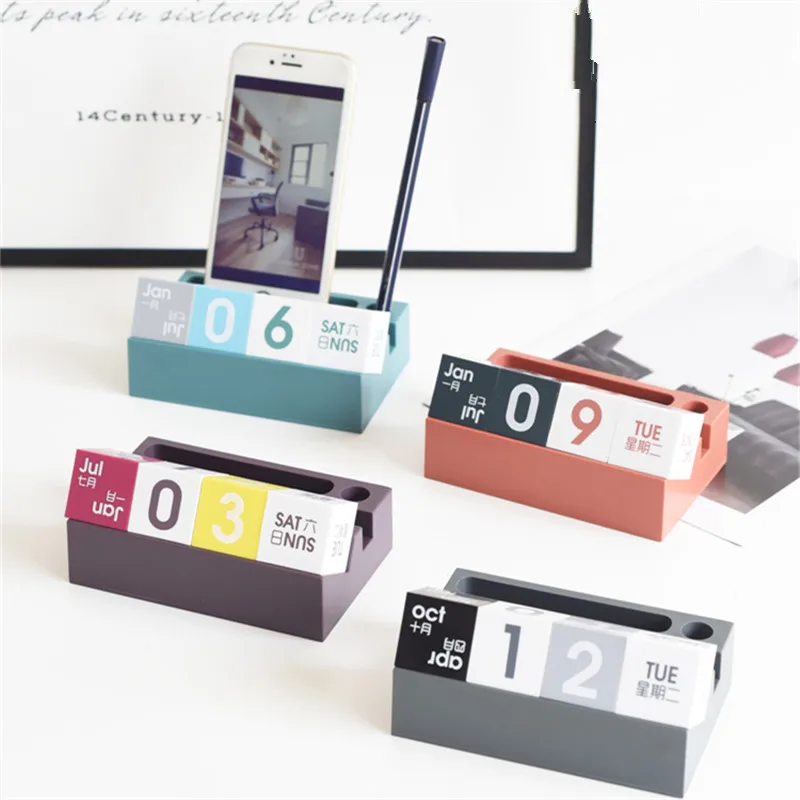 DIY Desktop Perpetual Calendar Mobile Phone Storage Racks Creative Office Home Makeup Brushes Holde