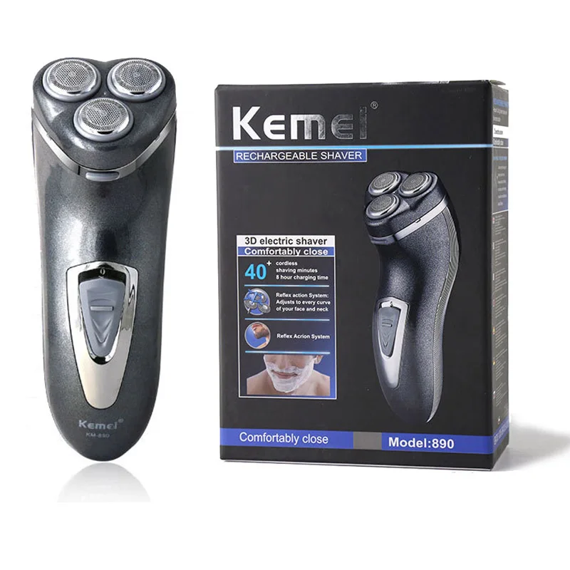 BEST QUALITY KEMEI KM-890 3D Floating Three Cutter Head Spinning Electric Shaver Rechargeable Wireless Beard Tri