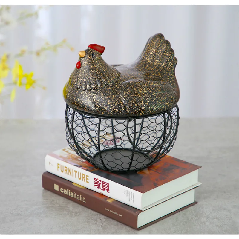 BEST Ceramic Hen Basket Wrought Iron Egg Storage Home Porch Desktop Kitchen Fruit and Vegetable Baskets