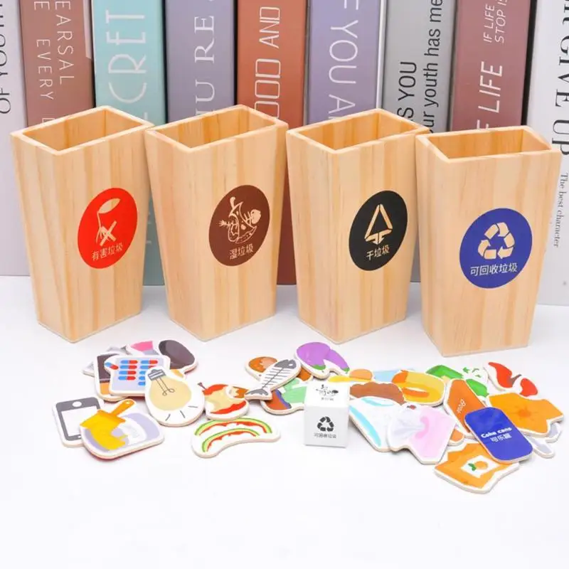 HIGH QUALITY Children Garbage Sorting Toys Wooden Trash Cans Garbage Classification Desktop Games Cognitive Play