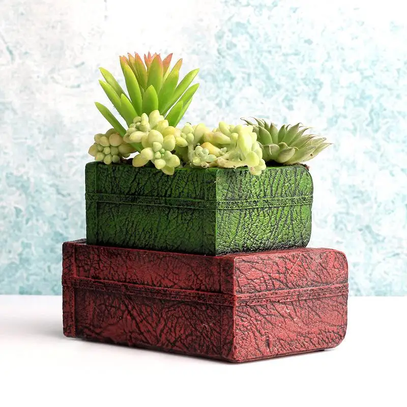 European Resin Flowerpot Book Succulent Plant Pot Suitcase Flower Garden Decor Bonsai Retro Desktop