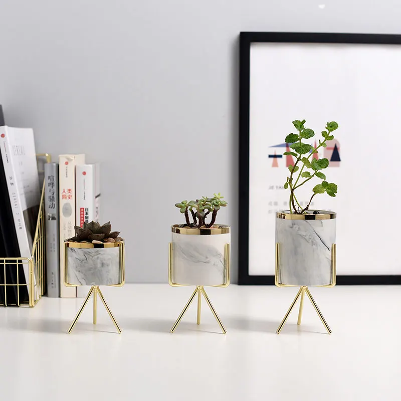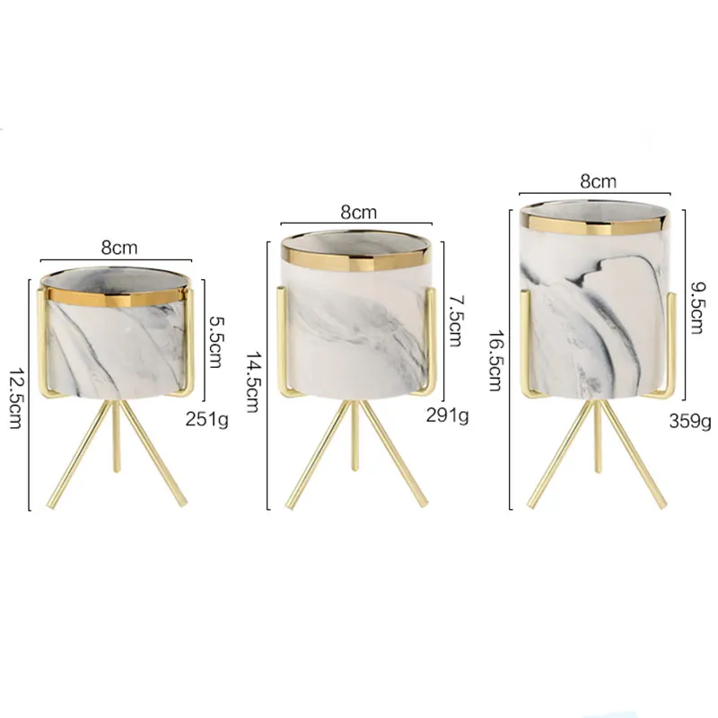 Marble Stripe Nordic Decoration Home Vase Mini Wrought Iron And Ceramic Vase Flower Vases Desktop v