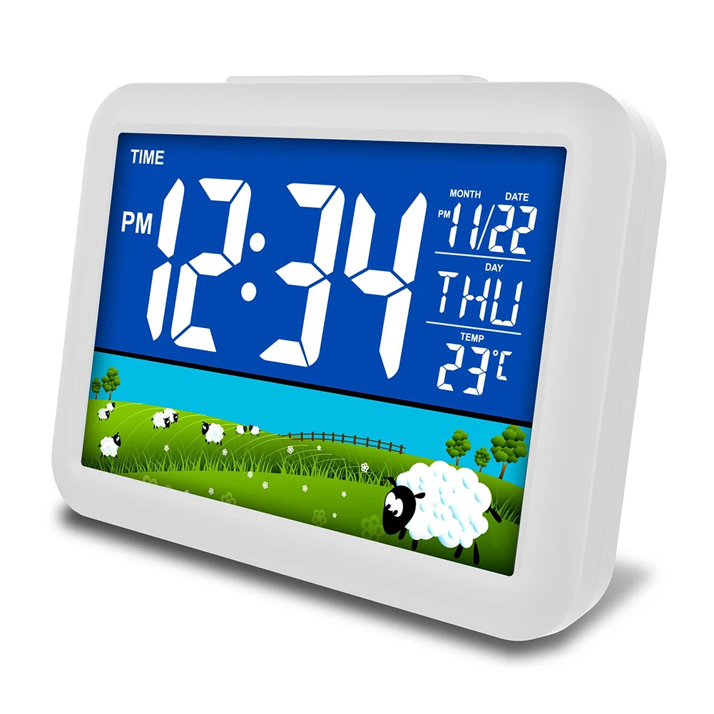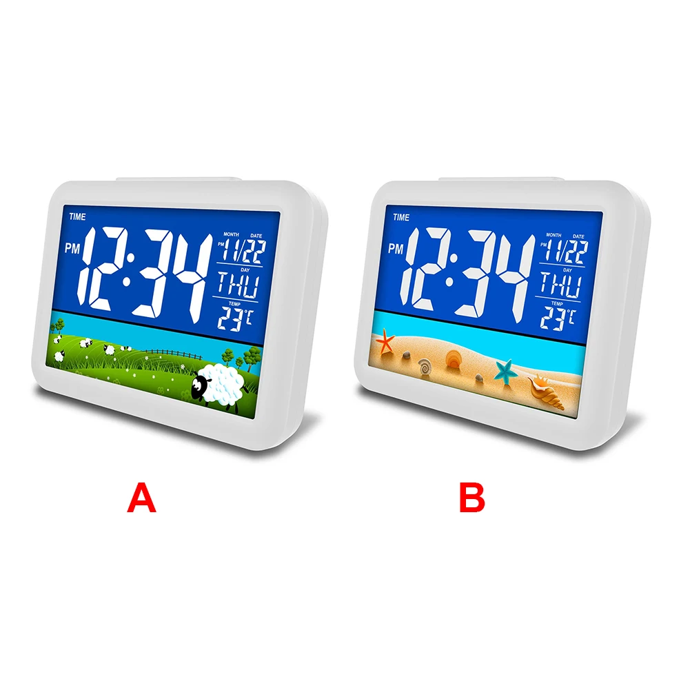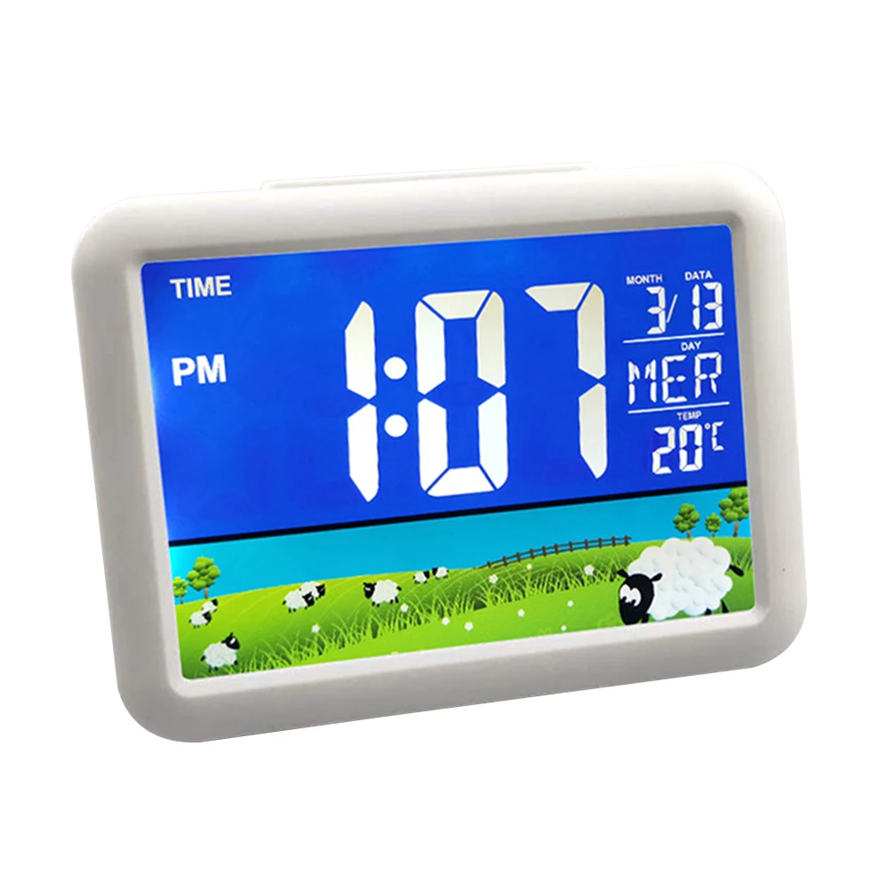 Reminder Electronic Alarm Clock Bedside Color Screen Nightlight Rectangle Snooze LCD Display Deskto